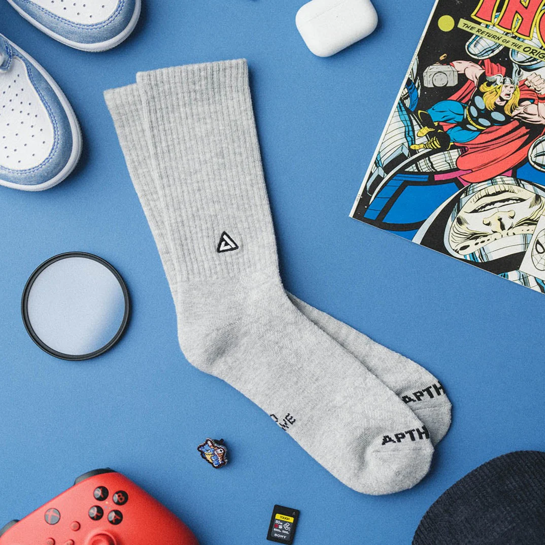 Stay focused and fly every day in APTHCRY® essentials collection. As stylish as they are functional, and backed by thoughtful craftsmanship, these socks provide maximum comfort and breathability. APTHCRY® socks feature our signature Iso-Weave mesh triangles, ribbed finishing, and arch support that will keep your feet cool, happy, and your style in check.